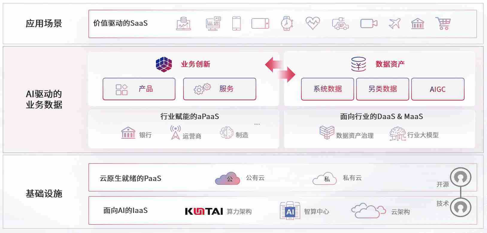 数字时代,,,围绕企业数字化转型的关键要素,,,,LETOU数码开创性的提出数云融合战略和技术体系框架,,,,着力在云原生、、、、数字原生、、、AI原生和信创产业上架构产品和服务能力,,,为处在不同数字化转型阶段的快消零售、、、汽车、、金融、、、医疗、、、政企、、教育、、、、运营商等行业客户提供泛在的敏捷IT能力和融合的数据驱动能力,,构建跨界融合创新的数字业务场景和新业务模式,,,,助力企业级客户建立面向未来的核心能力和竞争优势,,,全面推动社会的数字化、、、智能化转型升级。。